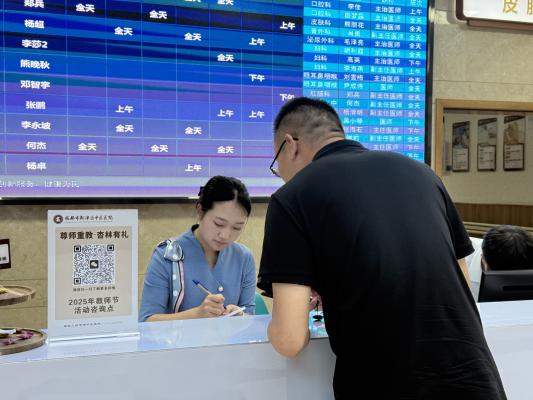 在第41个教师节过后,一份满载敬意的健康关怀如期而至。成都市新津区中医医院以“尊师重教、杏林有礼”为主题,为辛勤的教师群体打造“查、治、调”全维度健康守护服务,用专业与温情,为“园丁”们送上专属健康厚礼。 活动现场暖意融融,便捷服务获教师频频点赞。教师们凭教师资格证即可享受优惠...