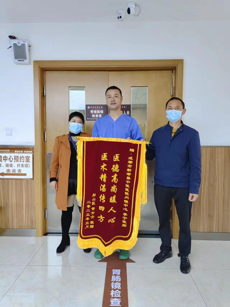 患者黄某,51 岁,家住眉山市彭山区,年前因肠胃时常感觉不适决定做一次胃肠镜检查,听亲朋好友说新津区中医医院内镜中心技术精湛,随后特意闻名而来,找到我院内镜中心李宁医生,经检查后发现患者肠道内直结肠多发息肉,与患者家属沟通后,家属表现出担忧和焦虑,随后内镜中心医务人员耐心的跟患...